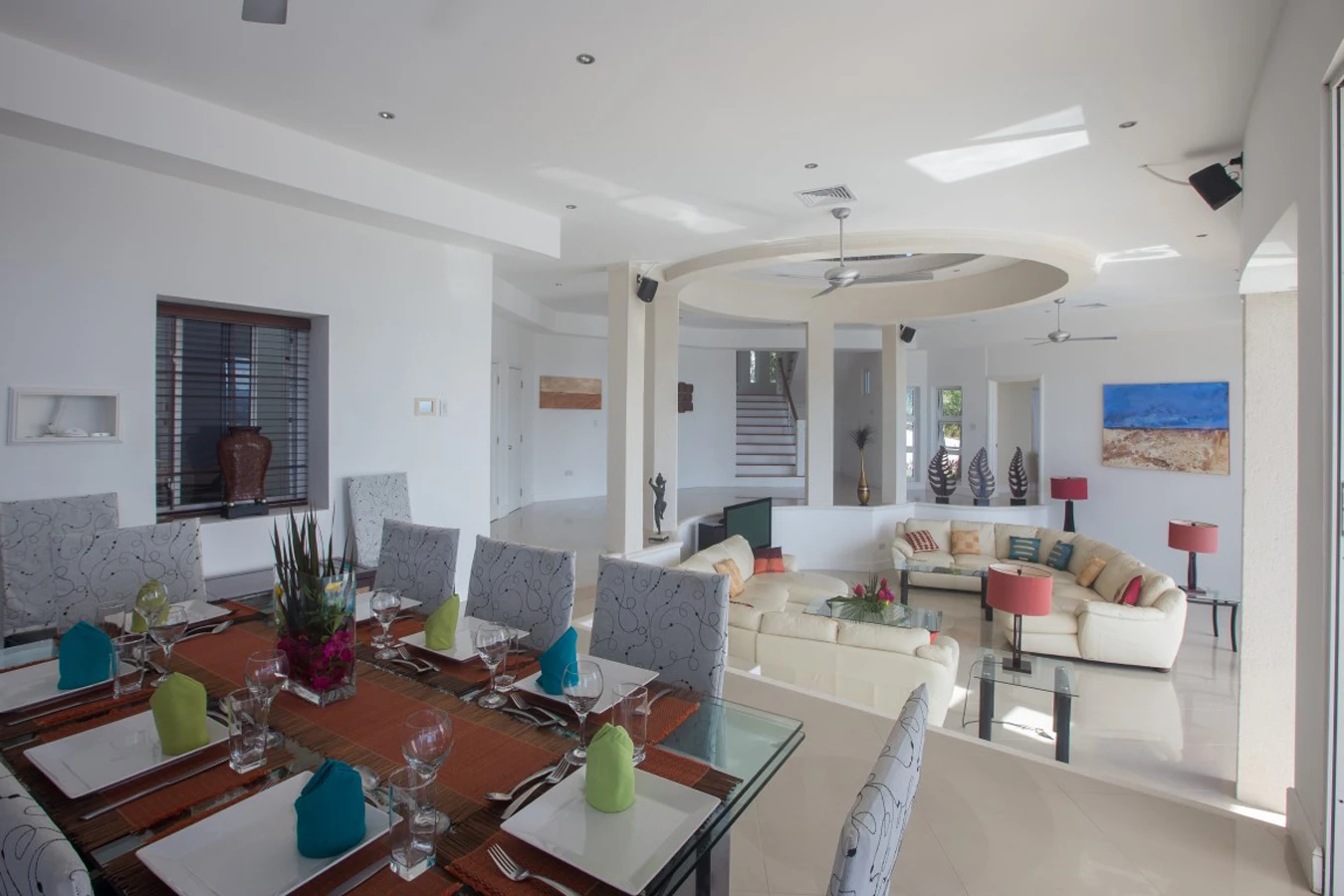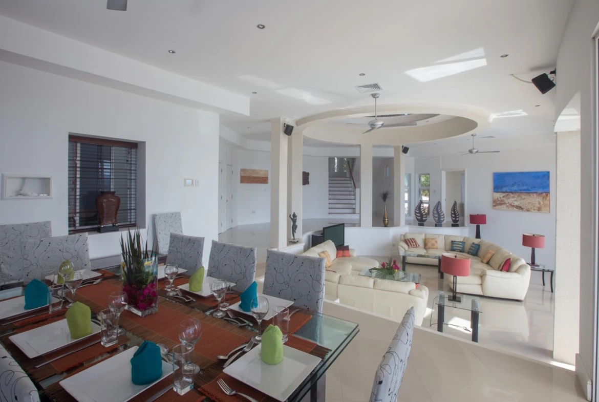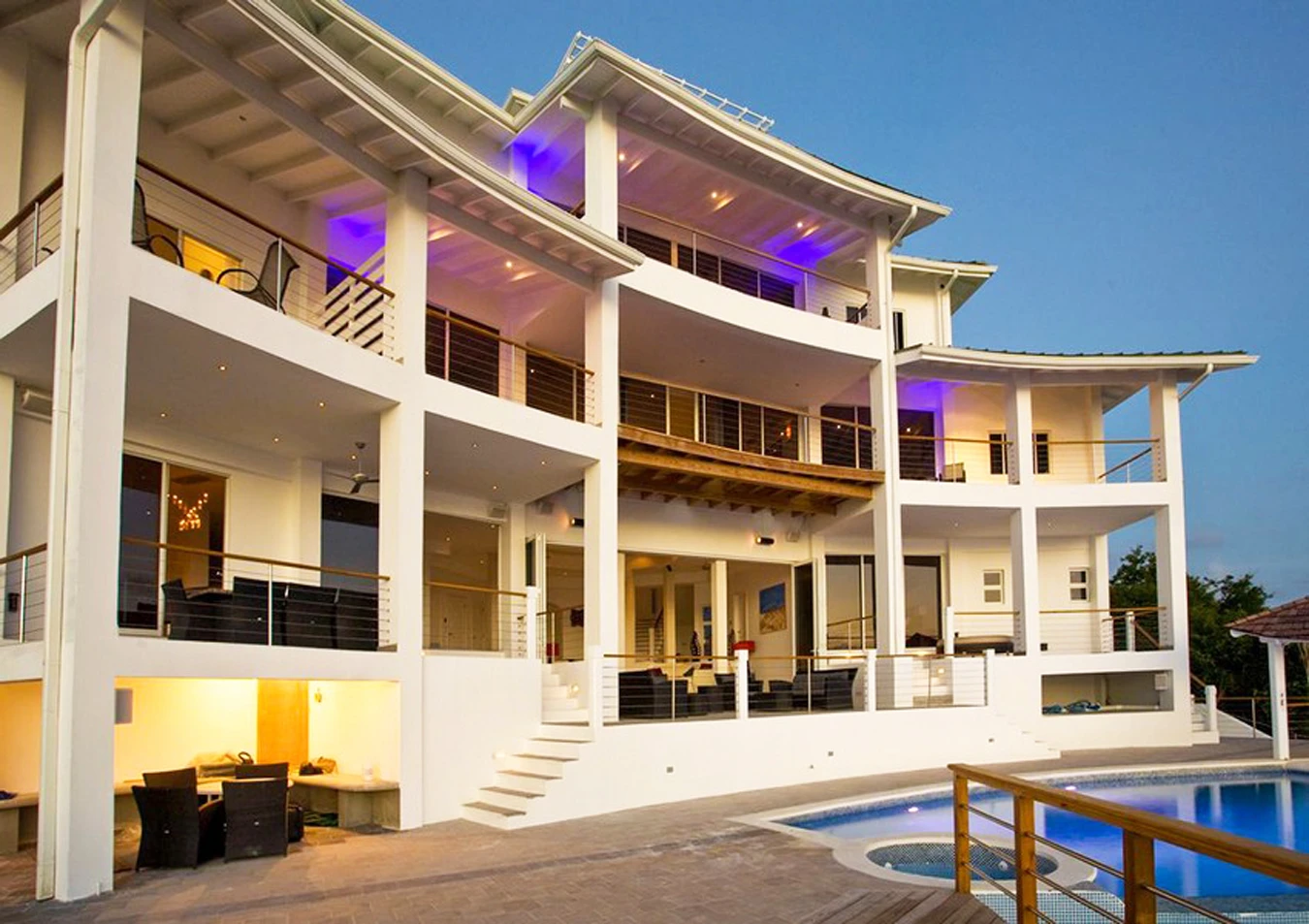 Luxury Akasha Villa For Sale in St Lucia is defined in Sanskirt as ‘Ether” – the material that fills the region of the universe above the atmosphere between Heaven and Earth. Perched in the Northern hills of St. Lucia with panoramic views of the Caribbean & Atlantic Ocean, Akasha offers you an outer world experience allowing you to relax, rejuvenate and recharge. From the airy open-plan living area to the floor to ceiling windows, Akasha is like no other. Currently, it is used as a holiday home rental property with proven returns. The main house features 4 luxury ensuite bedrooms – each with a dressing area, private terrace looking out onto the waters, ceiling speakers, fans, a king-sized bed and Kohler fixtures; 2 ensuite bedrooms in the adjoining self-contained apartments which can be separated or integrated into the house, that have a garden view and queen beds, all with a total of 8.5 bathrooms finished with granite countertops and the finest Spanish tiles & high end fittings. The main entry floor/first floor feature glass double doors and open into the Entertainment Area with direct views of the Caribbean Sea and Cariblue Beach. Entertainment area comprises a circle style feature with open view to the floor below, Swarovski chandelier, a 1976 Yamaha Grand Piano and a wooden terrace with glass insert floor, overlooking the infinity pool. On this floor are three bedrooms, one of which is the self-contained apartment with it’s own staircase. The main living space which is on the ground floor features a circular sunken living room (The Great Room) with a Swarovski chandelier and a 42-inch Home Entertainment system with a surround sound system boasting state-of-the-art-woofers and speaker with fully retractable 13″ glass doors that open out onto the 50ft tall entertainment terrace. The custom-made Italian Scavolini kitchen has more than ample cupboard space and there is a large dining area and outside terrace. There are two bedrooms on the ground floor, one of which is the self-contained apartment. The pool area features a Tiki hut, Viking outdoor kitchen, swim-up bar & expansive sundeck with stunning views. The pool is 30ft in length and 5 ft deep with a water fountain and jet. The master suite has it’s own level (2nd floor) with elevator access, a “Super King” bed, 42″ TV with surround sound and private terrace with unobstructed views. The enuite bathroom has a 2 person spa tub, large shower and twin vanity; with a large adjoining dressing room and walk-in closet. Akasha utilizes the latest technologies of automated lighting, audio, security and phone systems. There is a full alarm system with remote monitoring and armed response, and a complete CCTV system with offsite storage. Other features include: 4,000 SF of outdoor living space, a Theater located one level below the kitchen with Meridian digital theater, a state-of-the-art 110-inch screen, leather seating for 9 & digital and audio libraries; a Lutron Lighting System and sounds courtesy of the whole-home Crestron System; a games room just past the theater which has a pool table & poker table, spin bike and elliptical; rainwater and freshwater tanks, generator and Integrated Smart Home Technology. Akasha is…the ultimate villa.
